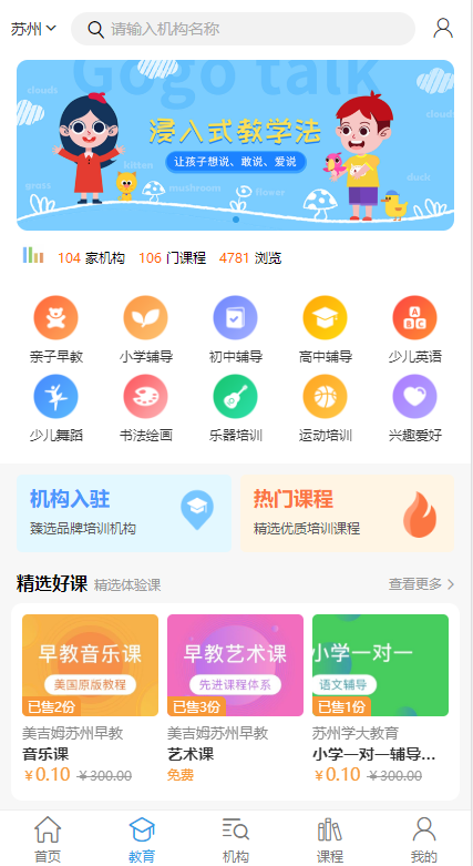 入驻的培训机构,可以发布培训课程(体验课和普通课程),用户可以在线报名下单,扫码核销;