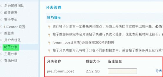 操作路径:【后台】=>【站长】=>【帖子分表】
