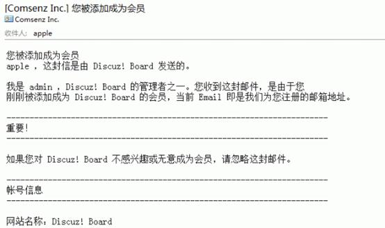 发送通知到上述地址:选择“是”,将发送通知到添加用户的 Email 中(在示例中如果选择“是”,通知邮件将会发送到hellen@comsenz.com 这个邮件地址);