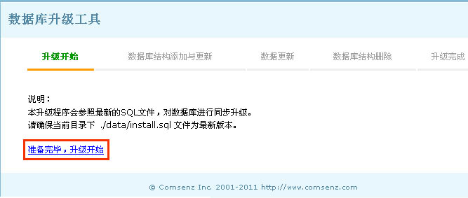 2、在浏览器中运行 http://www.domain.com/install/update.php 开始升级(其中 http://www.domain.com为你的站点访问地址)